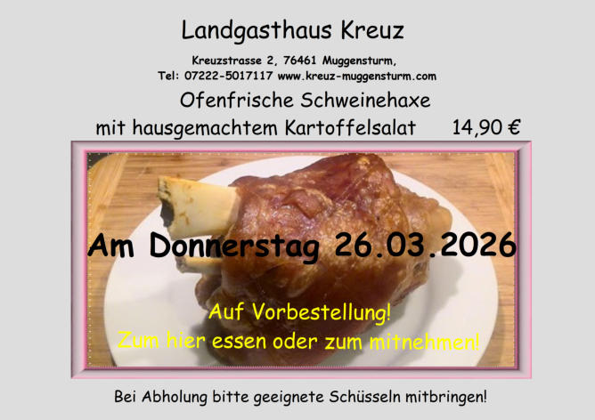 Landgasthaus Kreuz Familie Swen Ertle 76461 Muggensturm, Kreuzstrasse 2 Tel: 072225017117 Mobil: 0170-9004267